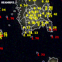 Black segments are analyzed here. Roll mouse over color images to view segments. Best viewed in a wide browser window (1200 pixels or more). Download SED & P(z) plots to view larger versions.