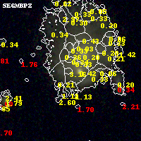 Black segments are analyzed here. Roll mouse over color images to view segments. Best viewed in a wide browser window (1200 pixels or more). Download SED & P(z) plots to view larger versions.