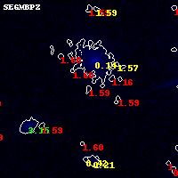 Black segments are analyzed here. Roll mouse over color images to view segments. Best viewed in a wide browser window (1200 pixels or more). Download SED & P(z) plots to view larger versions.