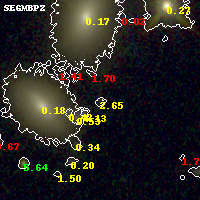 Black segments are analyzed here. Roll mouse over color images to view segments. Best viewed in a wide browser window (1200 pixels or more). Download SED & P(z) plots to view larger versions.