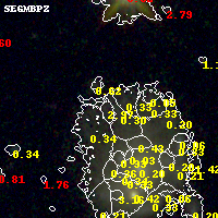 Black segments are analyzed here. Roll mouse over color images to view segments. Best viewed in a wide browser window (1200 pixels or more). Download SED & P(z) plots to view larger versions.