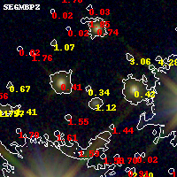 Black segments are analyzed here. Roll mouse over color images to view segments. Best viewed in a wide browser window (1200 pixels or more). Download SED & P(z) plots to view larger versions.