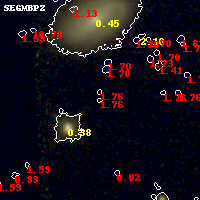Black segments are analyzed here. Roll mouse over color images to view segments. Best viewed in a wide browser window (1200 pixels or more). Download SED & P(z) plots to view larger versions.