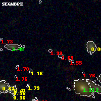 Black segments are analyzed here. Roll mouse over color images to view segments. Best viewed in a wide browser window (1200 pixels or more). Download SED & P(z) plots to view larger versions.