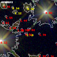 Black segments are analyzed here. Roll mouse over color images to view segments. Best viewed in a wide browser window (1200 pixels or more). Download SED & P(z) plots to view larger versions.