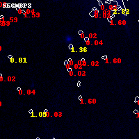 Black segments are analyzed here. Roll mouse over color images to view segments. Best viewed in a wide browser window (1200 pixels or more). Download SED & P(z) plots to view larger versions.