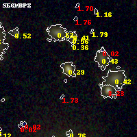 Black segments are analyzed here. Roll mouse over color images to view segments. Best viewed in a wide browser window (1200 pixels or more). Download SED & P(z) plots to view larger versions.