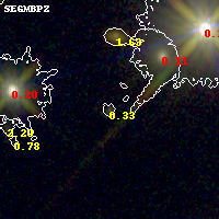Black segments are analyzed here. Roll mouse over color images to view segments. Best viewed in a wide browser window (1200 pixels or more). Download SED & P(z) plots to view larger versions.