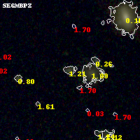 Black segments are analyzed here. Roll mouse over color images to view segments. Best viewed in a wide browser window (1200 pixels or more). Download SED & P(z) plots to view larger versions.