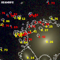 Black segments are analyzed here. Roll mouse over color images to view segments. Best viewed in a wide browser window (1200 pixels or more). Download SED & P(z) plots to view larger versions.