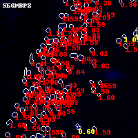 Black segments are analyzed here. Roll mouse over color images to view segments. Best viewed in a wide browser window (1200 pixels or more). Download SED & P(z) plots to view larger versions.