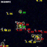 Black segments are analyzed here. Roll mouse over color images to view segments. Best viewed in a wide browser window (1200 pixels or more). Download SED & P(z) plots to view larger versions.