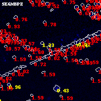 Black segments are analyzed here. Roll mouse over color images to view segments. Best viewed in a wide browser window (1200 pixels or more). Download SED & P(z) plots to view larger versions.