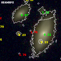 Black segments are analyzed here. Roll mouse over color images to view segments. Best viewed in a wide browser window (1200 pixels or more). Download SED & P(z) plots to view larger versions.