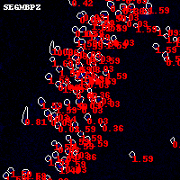 Black segments are analyzed here. Roll mouse over color images to view segments. Best viewed in a wide browser window (1200 pixels or more). Download SED & P(z) plots to view larger versions.