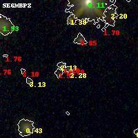 Black segments are analyzed here. Roll mouse over color images to view segments. Best viewed in a wide browser window (1200 pixels or more). Download SED & P(z) plots to view larger versions.