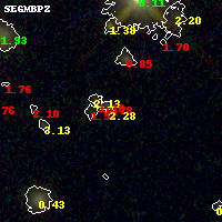 Black segments are analyzed here. Roll mouse over color images to view segments. Best viewed in a wide browser window (1200 pixels or more). Download SED & P(z) plots to view larger versions.