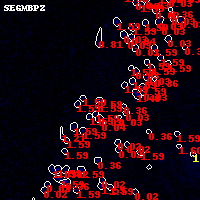 Black segments are analyzed here. Roll mouse over color images to view segments. Best viewed in a wide browser window (1200 pixels or more). Download SED & P(z) plots to view larger versions.