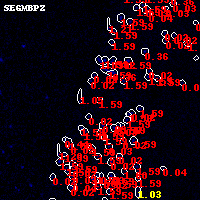 Black segments are analyzed here. Roll mouse over color images to view segments. Best viewed in a wide browser window (1200 pixels or more). Download SED & P(z) plots to view larger versions.