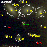 Black segments are analyzed here. Roll mouse over color images to view segments. Best viewed in a wide browser window (1200 pixels or more). Download SED & P(z) plots to view larger versions.