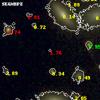 Black segments are analyzed here. Roll mouse over color images to view segments. Best viewed in a wide browser window (1200 pixels or more). Download SED & P(z) plots to view larger versions.