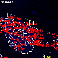 Black segments are analyzed here. Roll mouse over color images to view segments. Best viewed in a wide browser window (1200 pixels or more). Download SED & P(z) plots to view larger versions.