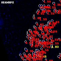 Black segments are analyzed here. Roll mouse over color images to view segments. Best viewed in a wide browser window (1200 pixels or more). Download SED & P(z) plots to view larger versions.