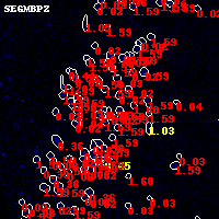 Black segments are analyzed here. Roll mouse over color images to view segments. Best viewed in a wide browser window (1200 pixels or more). Download SED & P(z) plots to view larger versions.
