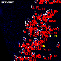Black segments are analyzed here. Roll mouse over color images to view segments. Best viewed in a wide browser window (1200 pixels or more). Download SED & P(z) plots to view larger versions.