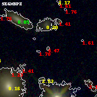 Black segments are analyzed here. Roll mouse over color images to view segments. Best viewed in a wide browser window (1200 pixels or more). Download SED & P(z) plots to view larger versions.