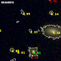 Black segments are analyzed here. Roll mouse over color images to view segments. Best viewed in a wide browser window (1200 pixels or more). Download SED & P(z) plots to view larger versions.