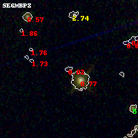 Black segments are analyzed here. Roll mouse over color images to view segments. Best viewed in a wide browser window (1200 pixels or more). Download SED & P(z) plots to view larger versions.