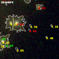 Black segments are analyzed here. Roll mouse over color images to view segments. Best viewed in a wide browser window (1200 pixels or more). Download SED & P(z) plots to view larger versions.