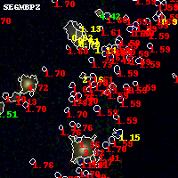 Black segments are analyzed here. Roll mouse over color images to view segments. Best viewed in a wide browser window (1200 pixels or more). Download SED & P(z) plots to view larger versions.