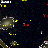 Black segments are analyzed here. Roll mouse over color images to view segments. Best viewed in a wide browser window (1200 pixels or more). Download SED & P(z) plots to view larger versions.