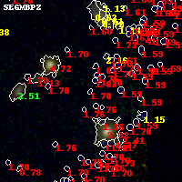 Black segments are analyzed here. Roll mouse over color images to view segments. Best viewed in a wide browser window (1200 pixels or more). Download SED & P(z) plots to view larger versions.