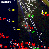 Black segments are analyzed here. Roll mouse over color images to view segments. Best viewed in a wide browser window (1200 pixels or more). Download SED & P(z) plots to view larger versions.
