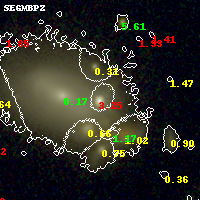 Black segments are analyzed here. Roll mouse over color images to view segments. Best viewed in a wide browser window (1200 pixels or more). Download SED & P(z) plots to view larger versions.