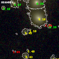 Black segments are analyzed here. Roll mouse over color images to view segments. Best viewed in a wide browser window (1200 pixels or more). Download SED & P(z) plots to view larger versions.