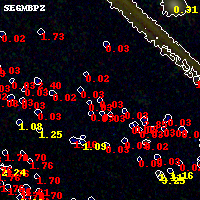 Black segments are analyzed here. Roll mouse over color images to view segments. Best viewed in a wide browser window (1200 pixels or more). Download SED & P(z) plots to view larger versions.