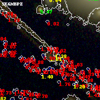 Black segments are analyzed here. Roll mouse over color images to view segments. Best viewed in a wide browser window (1200 pixels or more). Download SED & P(z) plots to view larger versions.