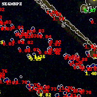 Black segments are analyzed here. Roll mouse over color images to view segments. Best viewed in a wide browser window (1200 pixels or more). Download SED & P(z) plots to view larger versions.
