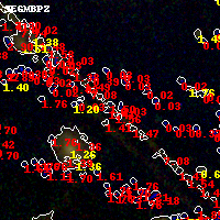 Black segments are analyzed here. Roll mouse over color images to view segments. Best viewed in a wide browser window (1200 pixels or more). Download SED & P(z) plots to view larger versions.