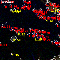 Black segments are analyzed here. Roll mouse over color images to view segments. Best viewed in a wide browser window (1200 pixels or more). Download SED & P(z) plots to view larger versions.