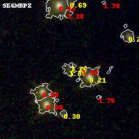 Black segments are analyzed here. Roll mouse over color images to view segments. Best viewed in a wide browser window (1200 pixels or more). Download SED & P(z) plots to view larger versions.