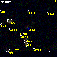 Black segments are analyzed here. Roll mouse over color images to view segments. Best viewed in a wide browser window (1200 pixels or more). Download SED & P(z) plots to view larger versions.