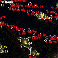 Black segments are analyzed here. Roll mouse over color images to view segments. Best viewed in a wide browser window (1200 pixels or more). Download SED & P(z) plots to view larger versions.