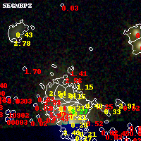 Black segments are analyzed here. Roll mouse over color images to view segments. Best viewed in a wide browser window (1200 pixels or more). Download SED & P(z) plots to view larger versions.