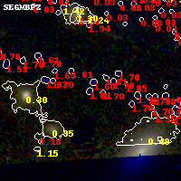 Black segments are analyzed here. Roll mouse over color images to view segments. Best viewed in a wide browser window (1200 pixels or more). Download SED & P(z) plots to view larger versions.