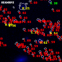 Black segments are analyzed here. Roll mouse over color images to view segments. Best viewed in a wide browser window (1200 pixels or more). Download SED & P(z) plots to view larger versions.